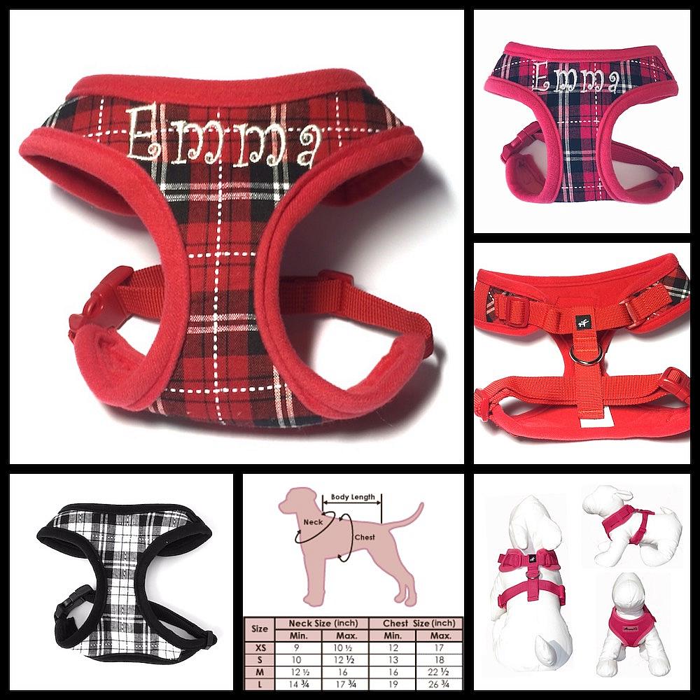 with a Personalized Adjustable Neck Plaid Harness